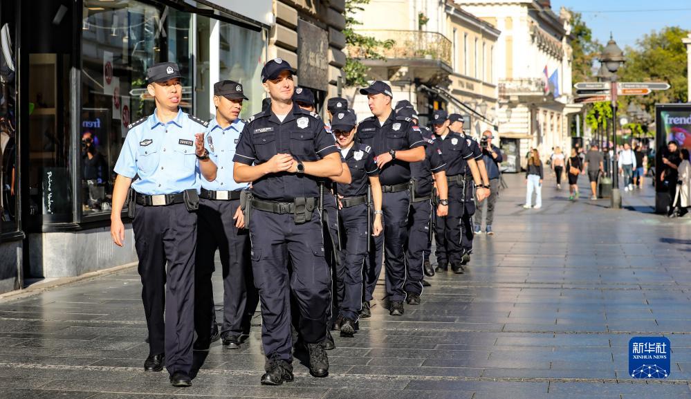9月28日,在塞爾維亞首都貝爾格萊德,中塞兩國警察在街頭聯合巡邏。