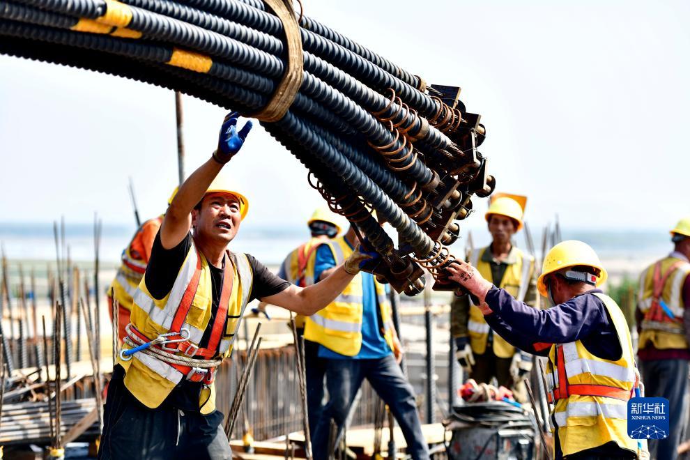 9月29日,在濟(寧)曲(阜)快速路上跨京滬鐵路立交橋項目,中鐵上海局的工作人員在忙碌作業。