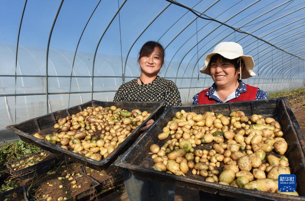 9月29日,當地農民展示剛剛收獲的馬鈴薯原原種。