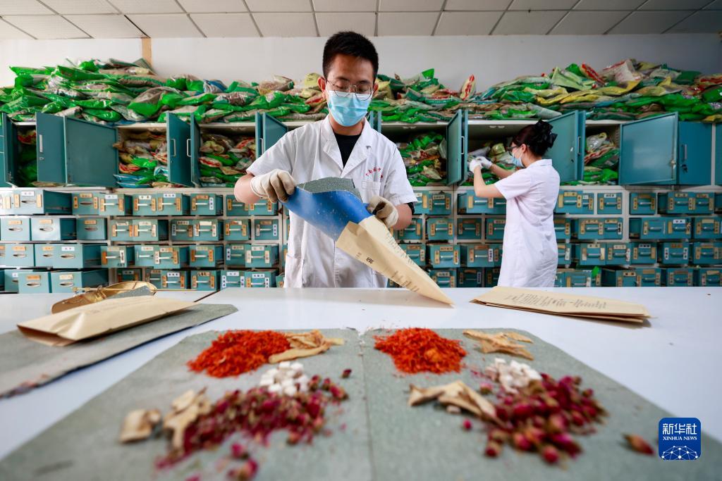 9月30日,河北省唐山市豐南區中醫醫院的醫師在抓配中藥。