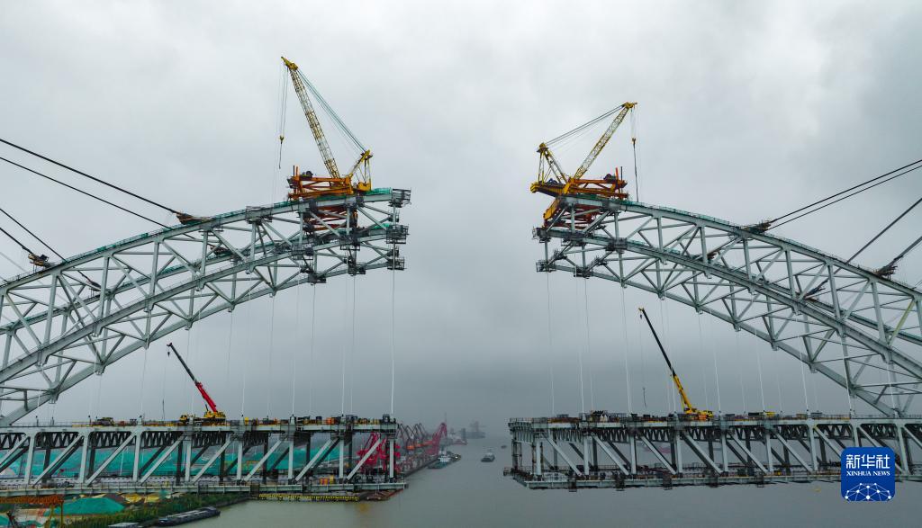9月30日,中交二航局工人在位于江蘇省泰州市的常泰長江大橋建設項目工地作業(無人機照片)。