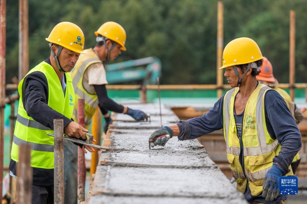 9月30日,在云南省安寧工業園區第四污水處理廠項目工地,中鐵上海局六公司的建設者在對V型濾池池頂堰墻進行混凝土收面。