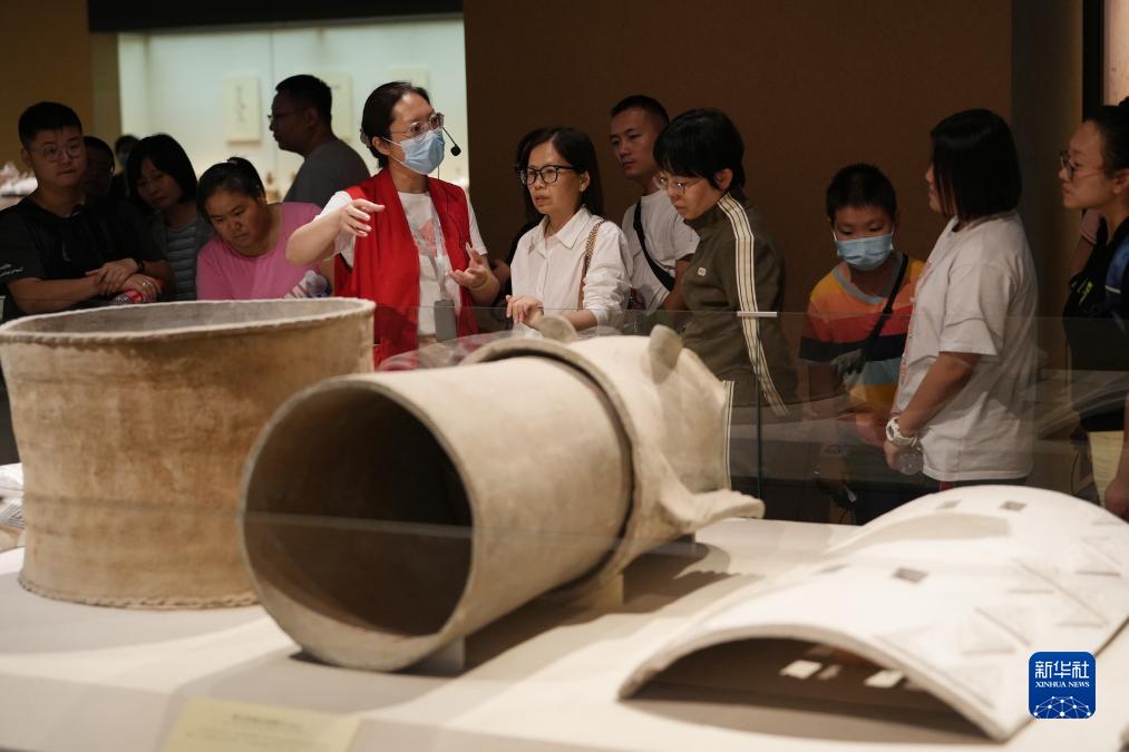 9月30日,河北博物院的講解員在給參觀者介紹展品。