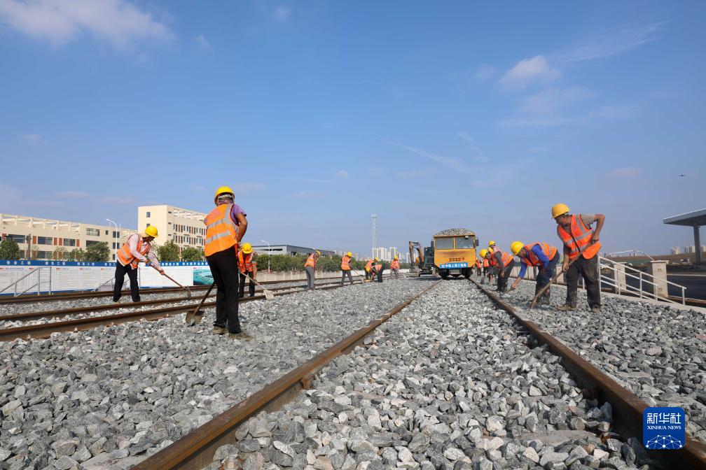 9月30日,中鐵上海工程局的工人在新建合肥派河港鐵路物流基地項目施工現場作業。