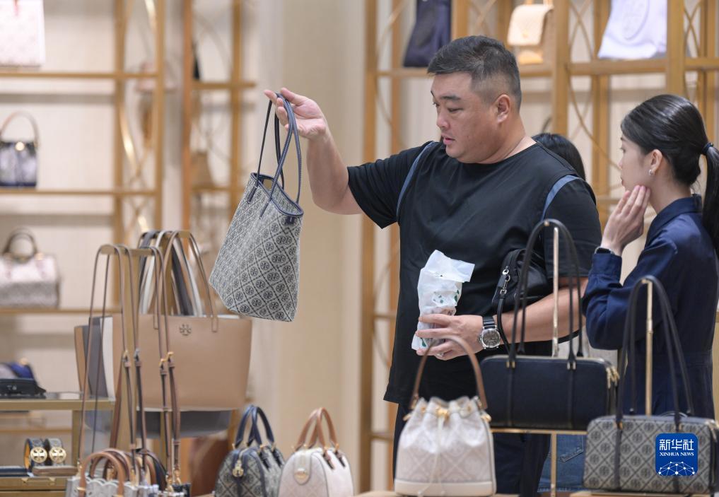 9月29日,消費者在中免集團??谌赵聫V場免稅店選購商品。