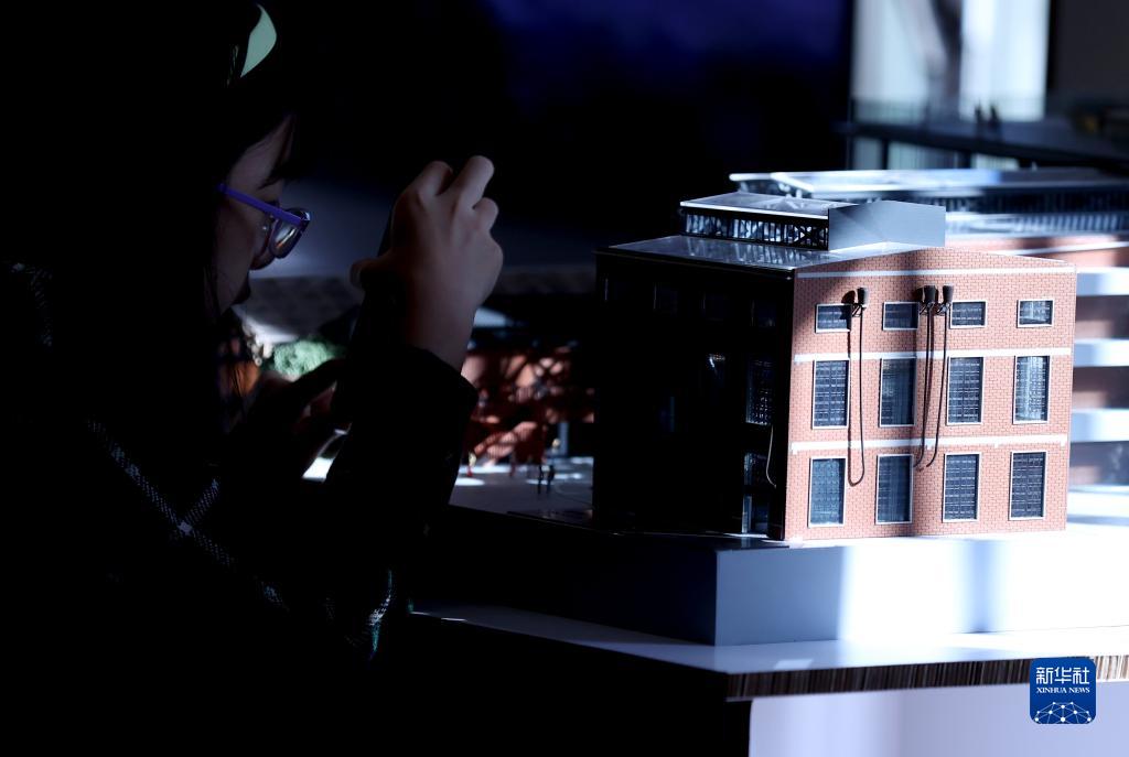 9月29日,在英國倫敦,一名女孩在“建筑當代中國”展覽上拍攝建筑模型。