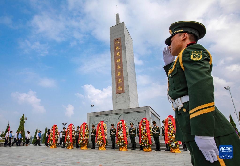 9月30日,武警廣西總隊賀州支隊官兵在賀州市古柏山烈士陵園參加烈士公祭活動。