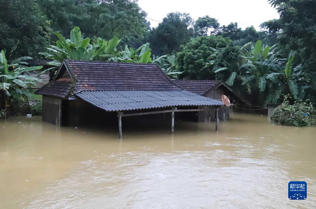 9月27日,在越南總部義安省,房屋被洪水淹沒。