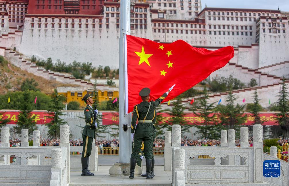10月1日上午,西藏自治區慶祝中華人民共和國成立74周年“升國旗、唱國歌”儀式在拉薩布達拉宮廣場舉行。
