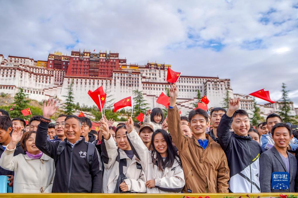 10月1日上午,人們在拉薩布達拉宮廣場參加西藏自治區慶祝中華人民共和國成立74周年“升國旗、唱國歌”儀式。