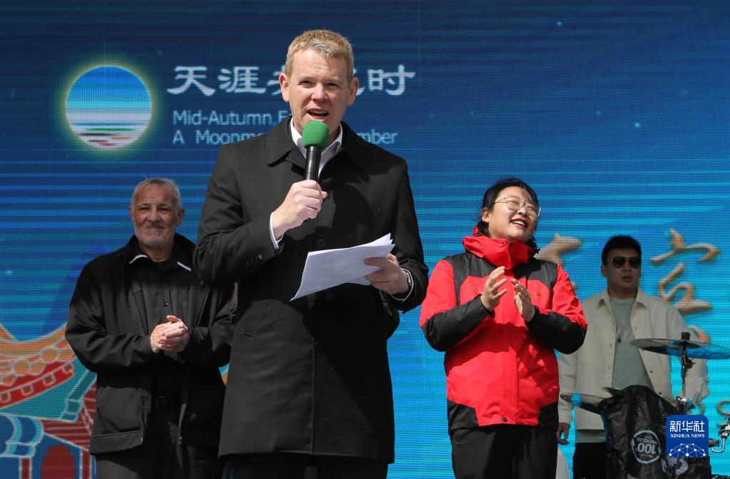 9月30日,“天涯共此時”慶?;顒釉谛挛魈m奧克蘭舉行,新西蘭總理希普金斯用中文“中秋快樂”向當地華人表達節日祝福。