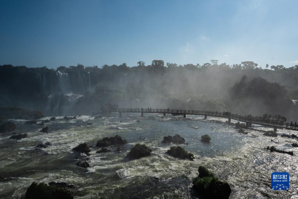 10月1日,游客在巴西巴拉那州伊瓜蘇大瀑布景區內參觀。