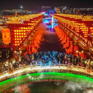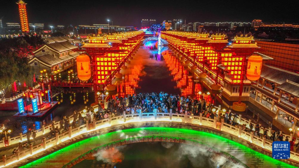 當日是國慶節,河北省唐山市豐南區河頭老街景區燈光璀璨,流光溢彩,市民和游客紛紛前來賞景、游玩,歡度佳節。