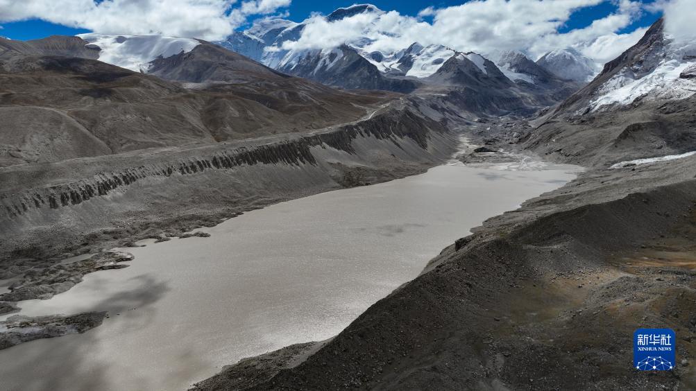 卓奧友峰區域加布拉冰川附近的冰前湖(9月29日攝,無人機照片)。