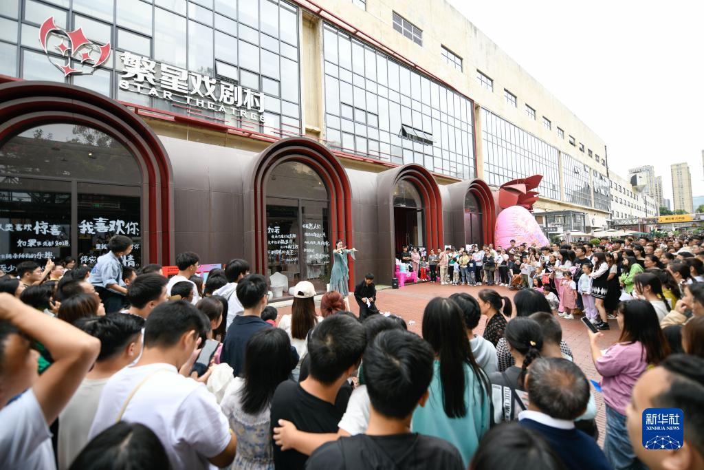 10月2日,成都繁星戲劇村演員在四川成都東郊記憶園區內為人們演出。