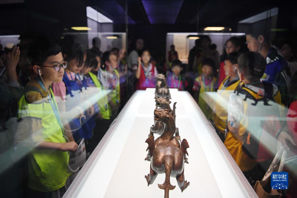 10月2日,學生在河北博物院內參觀。