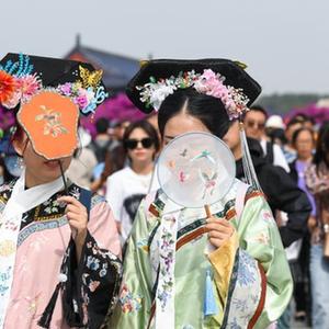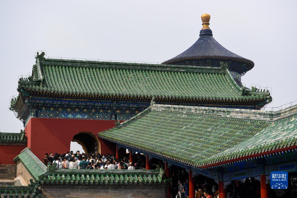 當日正值國慶假期,在北京天壇公園,來自各地的游客在這里參觀游覽。