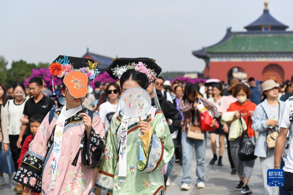 當日正值國慶假期,在北京天壇公園,來自各地的游客在這里參觀游覽。