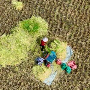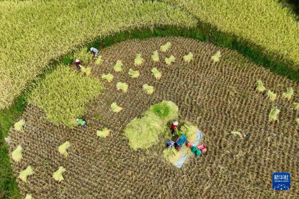 中秋前后,福建省永泰縣10多萬畝水稻進入成熟收獲期,一塊塊金黃色的稻田點綴在青山與傳統村落之間,田間地頭一派繁忙的秋收景象。
