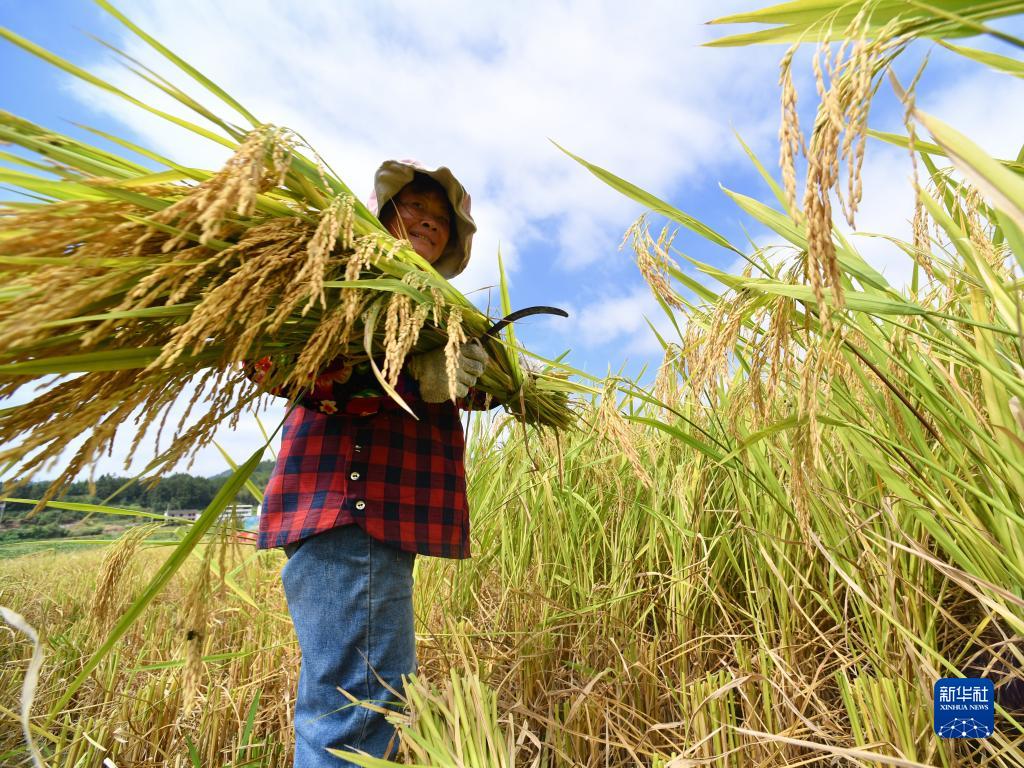 中秋前后,福建省永泰縣10多萬畝水稻進入成熟收獲期,一塊塊金黃色的稻田點綴在青山與傳統村落之間,田間地頭一派繁忙的秋收景象。