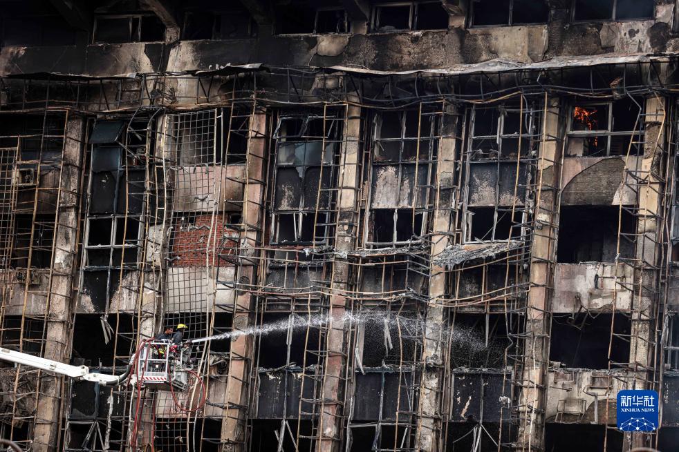 10月2日,在埃及伊斯梅利亞,消防員在警察局大樓滅火。