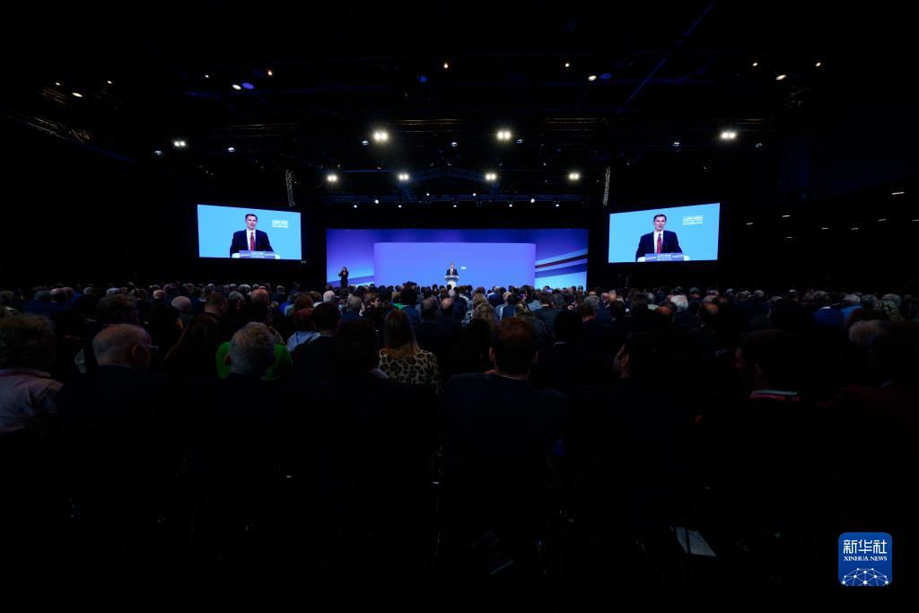 10月2日,在英國曼徹斯特,英國財政大臣杰里米·亨特在保守黨年度大會上發言。