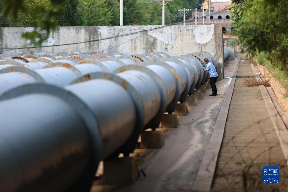 工作人員在大禹渡揚水工程對管道進行養護(9月21日攝)。