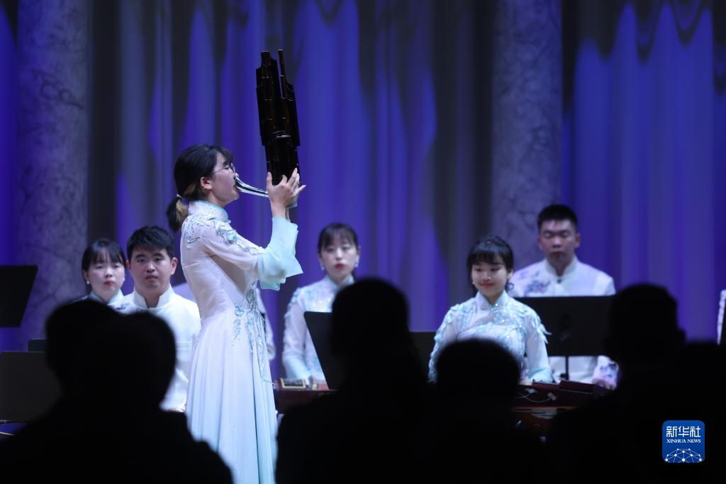 10月2日,在斯洛文尼亞盧布爾雅那的盧布爾雅那大學音樂學院,南京大學民族樂團成員表演笙獨奏。