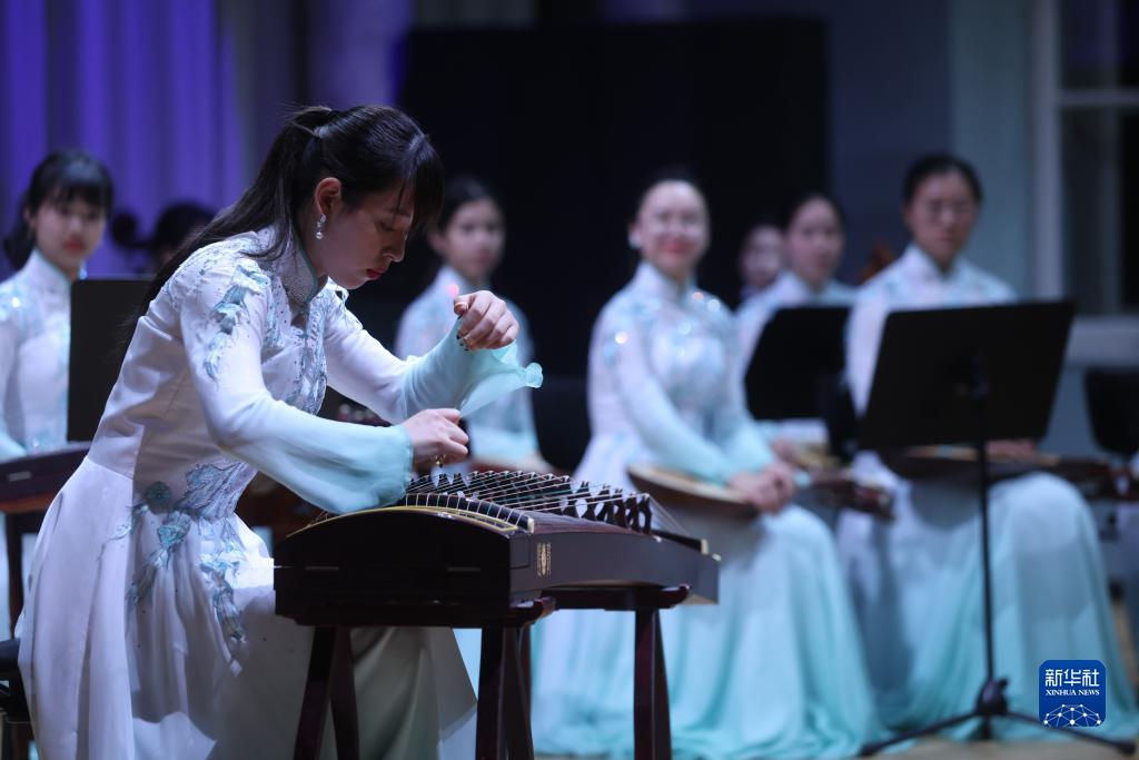 10月2日,在斯洛文尼亞盧布爾雅那的盧布爾雅那大學音樂學院,南京大學民族樂團成員表演古箏獨奏。