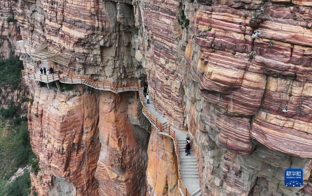 10月2日,游客在河北省武安市東太行景區觀光(無人機照片)。
