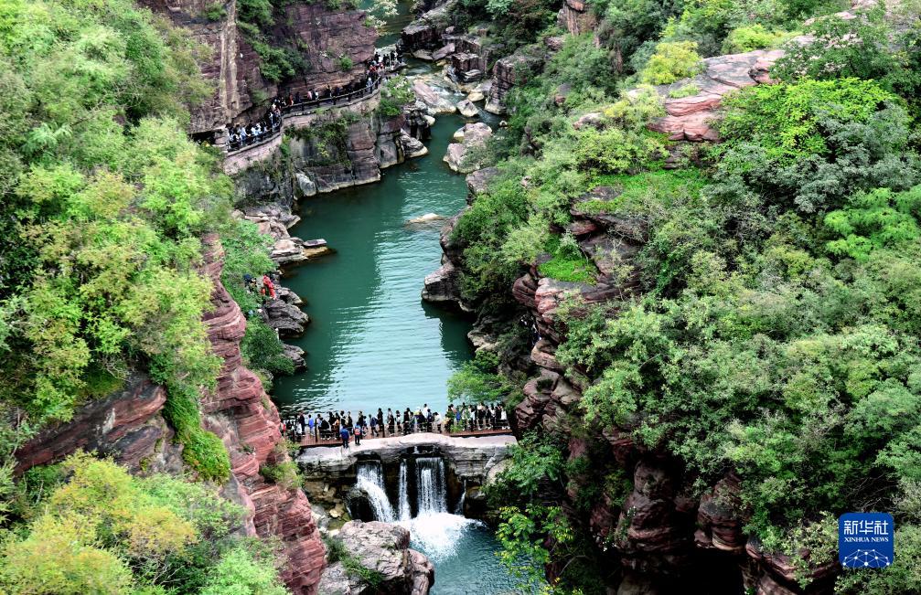 10月2日,游客在河南省云臺山紅石峽景區游覽。
