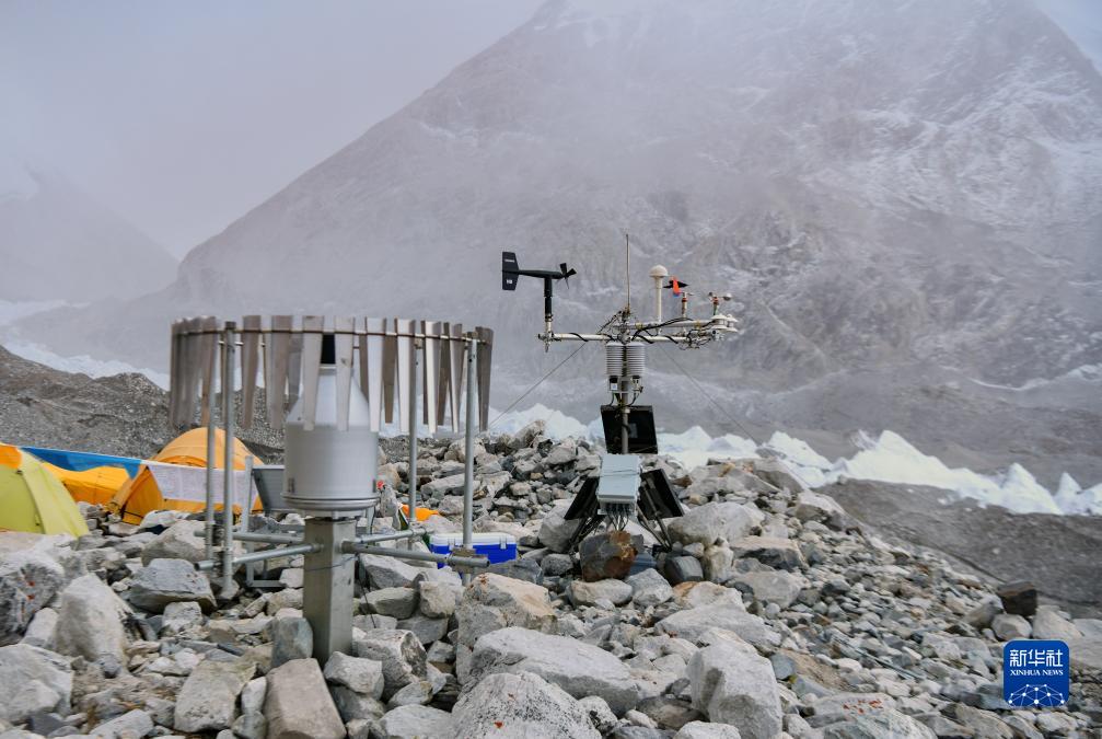 位于海拔5700米卓奧友峰前進營地的自動氣象站(9月29日攝)。