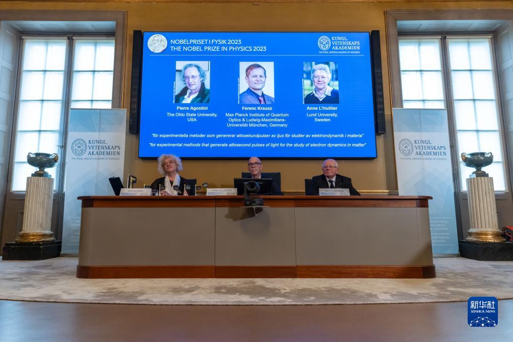 瑞典皇家科學院3日宣布,將2023年諾貝爾物理學獎授予皮埃爾·阿戈斯蒂尼、費倫茨·克勞斯和安妮·呂利耶,以表彰他們將產生阿秒光脈沖的實驗方法用于研究物質的電子動力學。