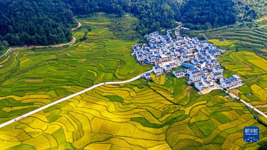 這是10月4日拍攝的廣西靖西市新靖鎮東利村周邊待收的稻田(無人機照片)。