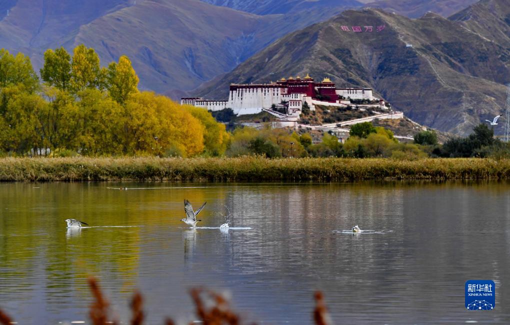 金秋十月,漁鷗在西藏拉薩市國家級自然保護區拉魯濕地里嬉戲,惹人喜愛。