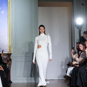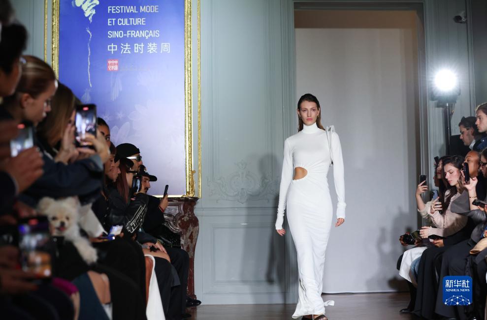 10月3日,在法國巴黎舉行的首屆中法時裝周上,模特展示法國品牌THEUNISSEN2024春夏新品時裝。