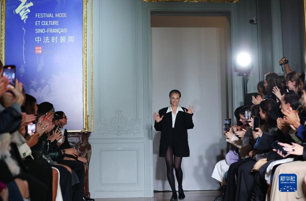 10月3日,在法國巴黎舉行的首屆中法時裝周上,法國設計師Ariane Theunissen向觀眾致意。