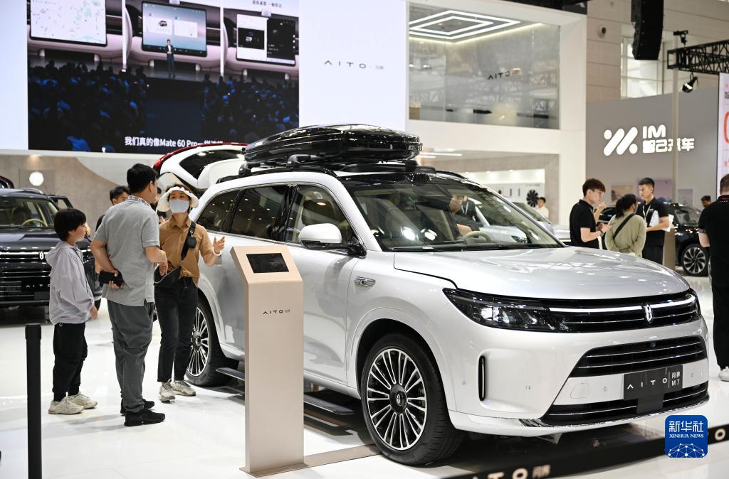 10月4日,參觀者在問界汽車展臺參觀。