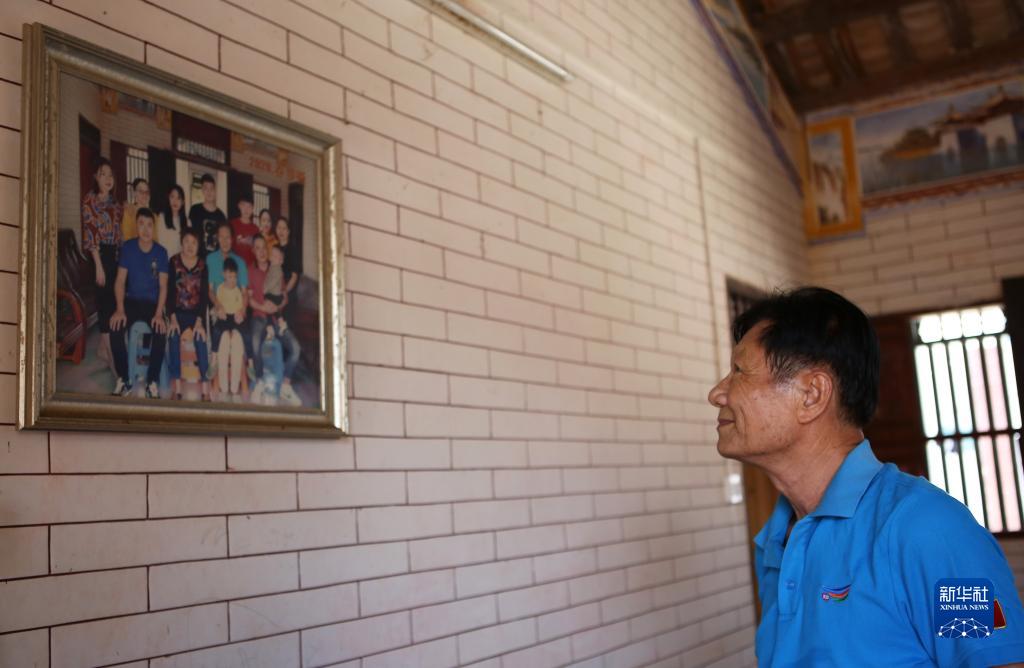 9月19日,在海南省瓊海市黃宏波老家中,黃宏波望著墻上的全家福。黃宏波在北島工作時期,鮮少回老家。