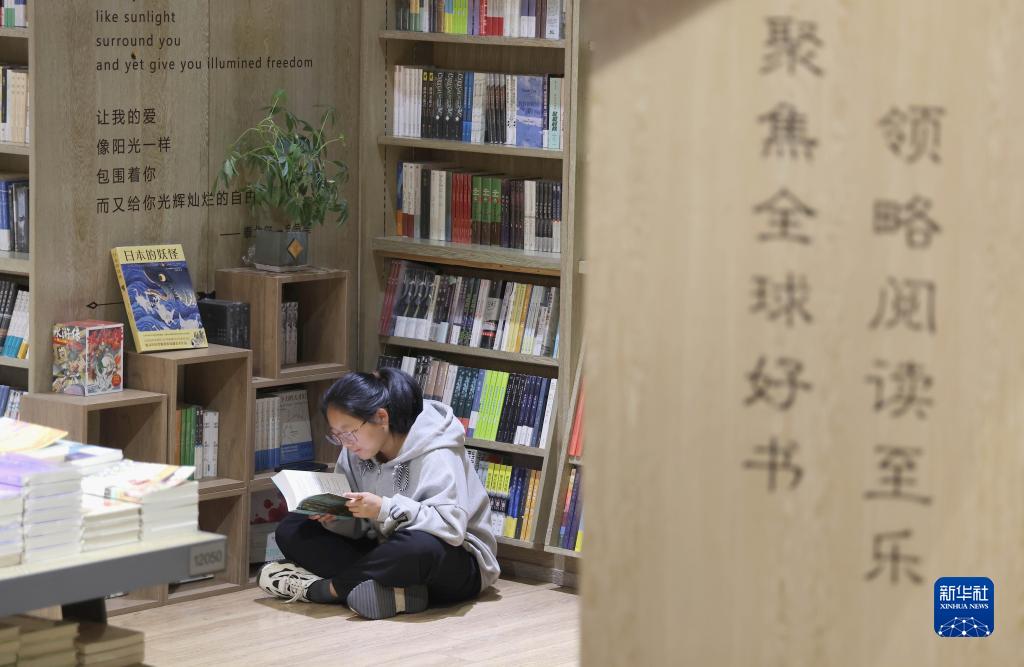 10月4日,一名學生在山東省臨沂市新華書店讀書。