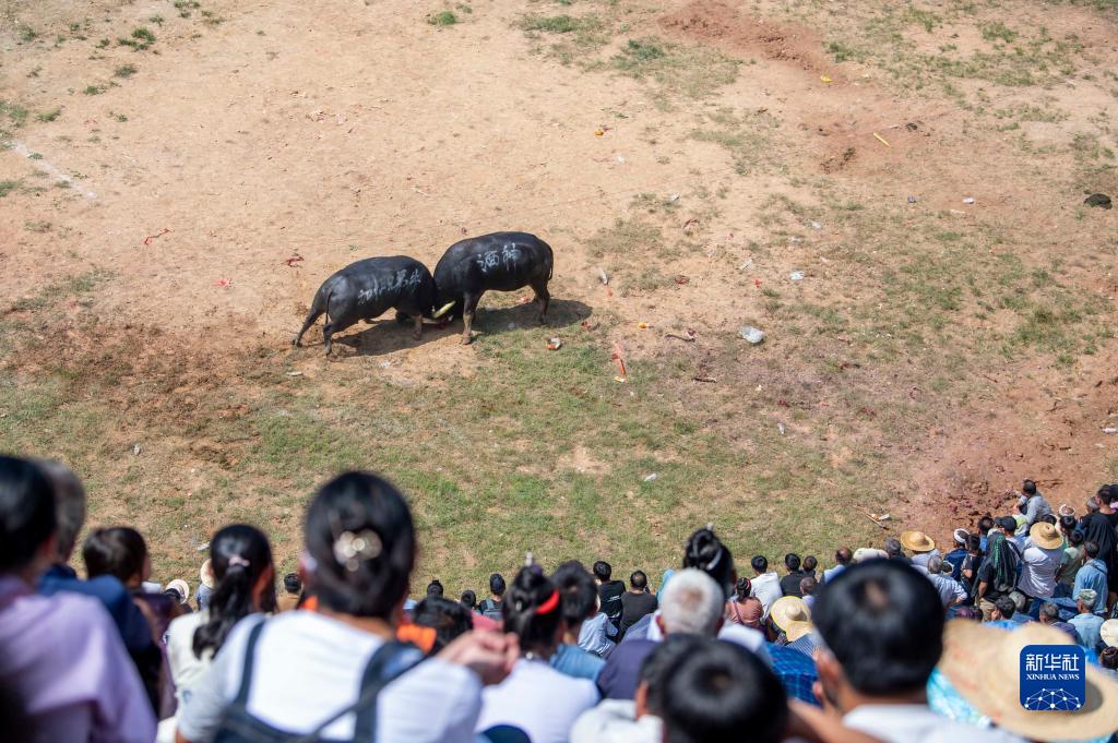 10月4日,人們在貴州省從江縣下江鎮觀看斗牛。