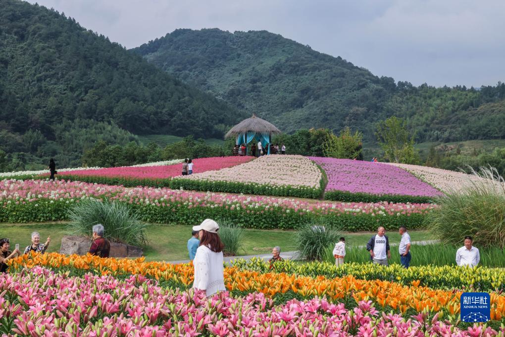 中秋國慶長假期間,浙江省杭州市余杭區徑山鎮徑山花海拾花節暨宋韻游園會開啟。市民游客徜徉在近千畝的徑山花海中,觀賞絢爛的秋日美景,體驗融入宋韻文化內涵的蹴鞠、射箭、投壺等的休閑運動。