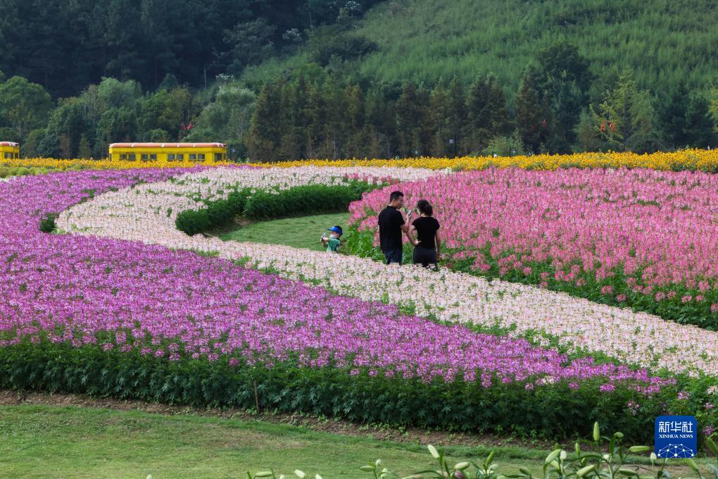中秋國慶長假期間,浙江省杭州市余杭區徑山鎮徑山花海拾花節暨宋韻游園會開啟。市民游客徜徉在近千畝的徑山花海中,觀賞絢爛的秋日美景,體驗融入宋韻文化內涵的蹴鞠、射箭、投壺等的休閑運動。