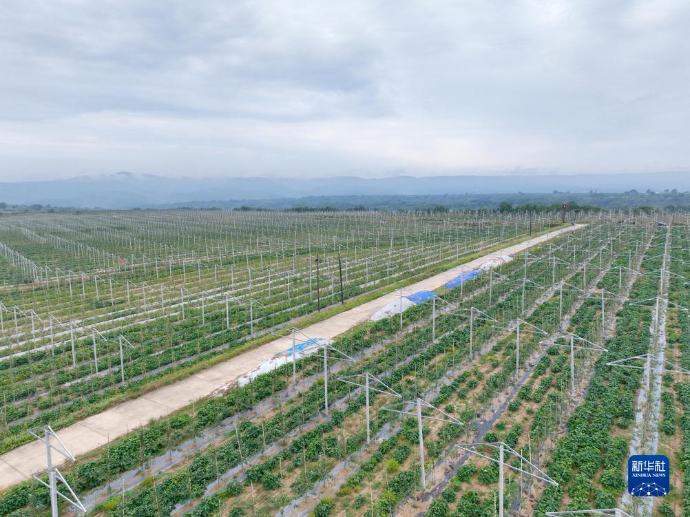 宜川縣云巖鎮北赤村完成新品種改造的蘋果園(9月27日攝,無人機照片)。