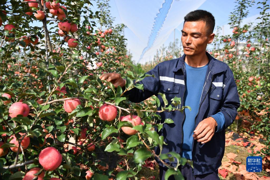 金秋時節,陜西省延安市宜川縣30萬畝蘋果陸續成熟,黃河沿岸的蘋果產業帶上處處豐收景象。
