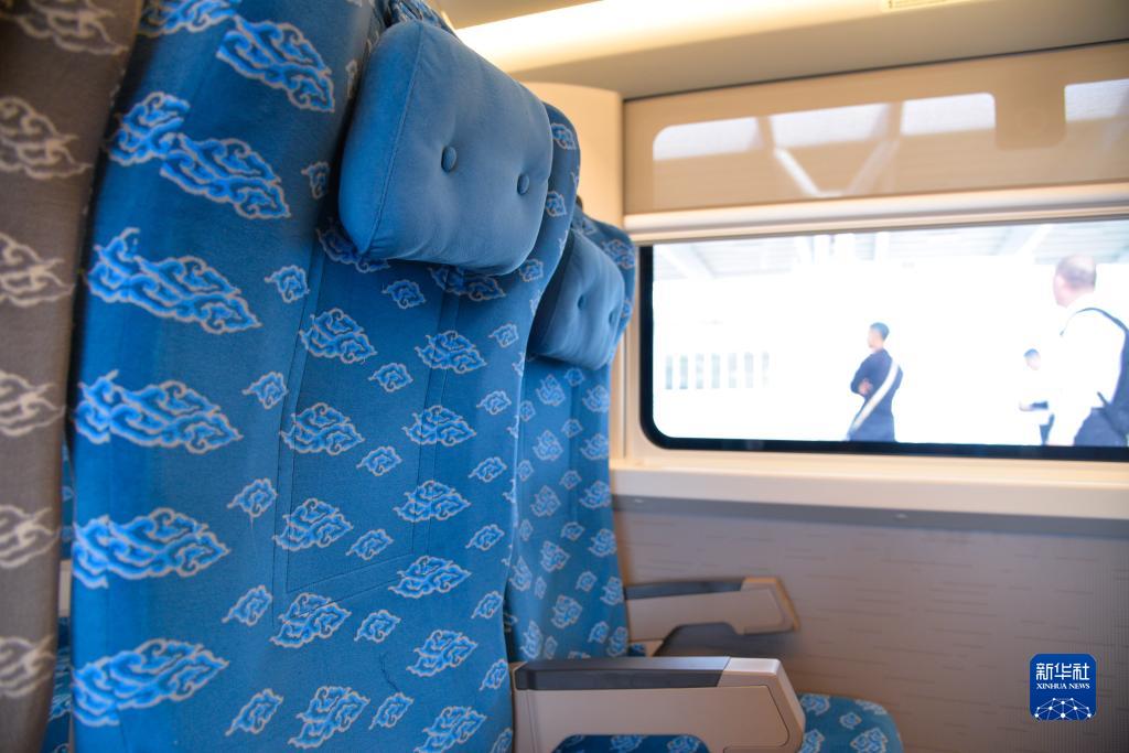這是在印度尼西亞雅萬高鐵高速動車組上拍攝的座椅上的祥云圖案(9月4日攝)。