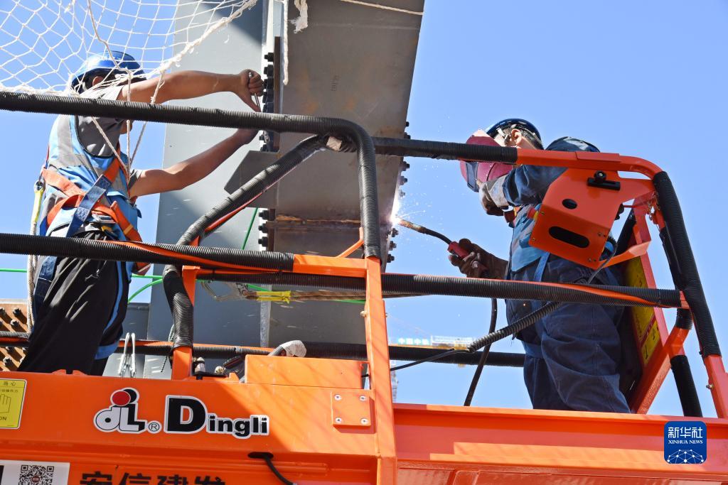 10月5日,中鐵建工建設者在項目工地上進行鋼結構焊接、安裝。