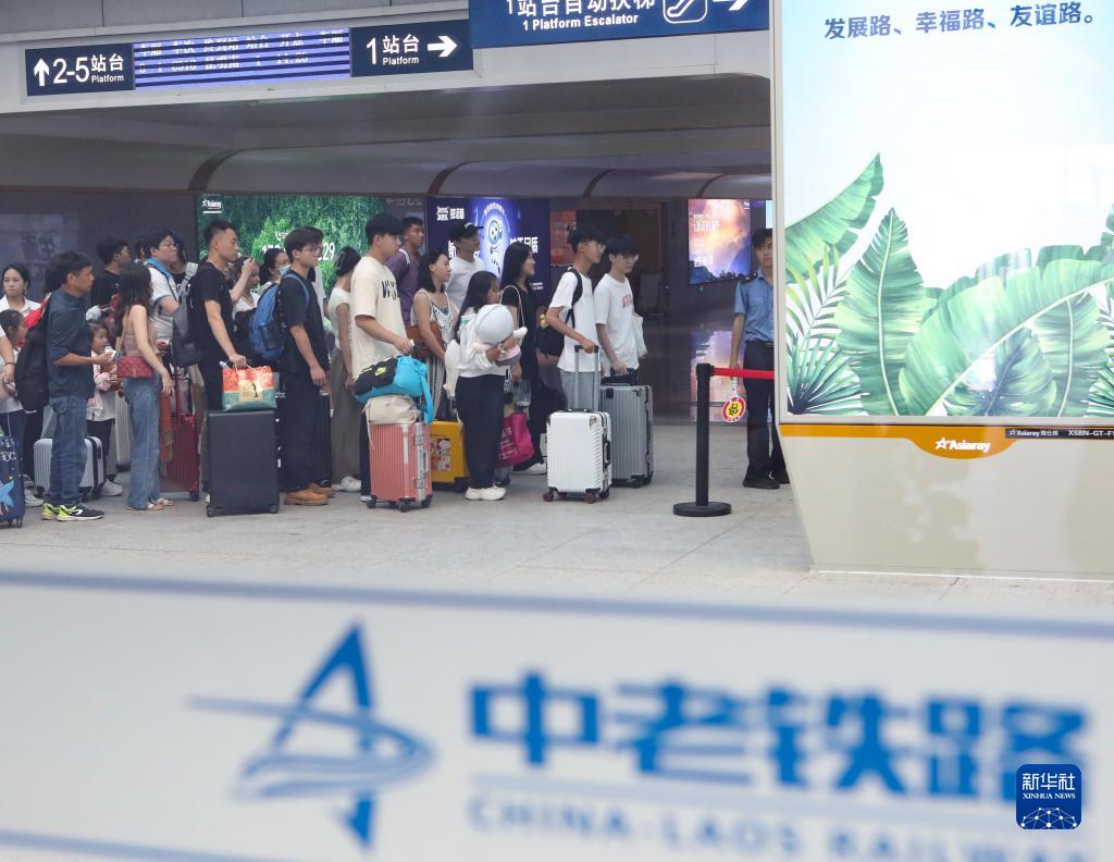 10月5日,在云南景洪市的中老鐵路西雙版納站,旅客依次進入站臺乘車。