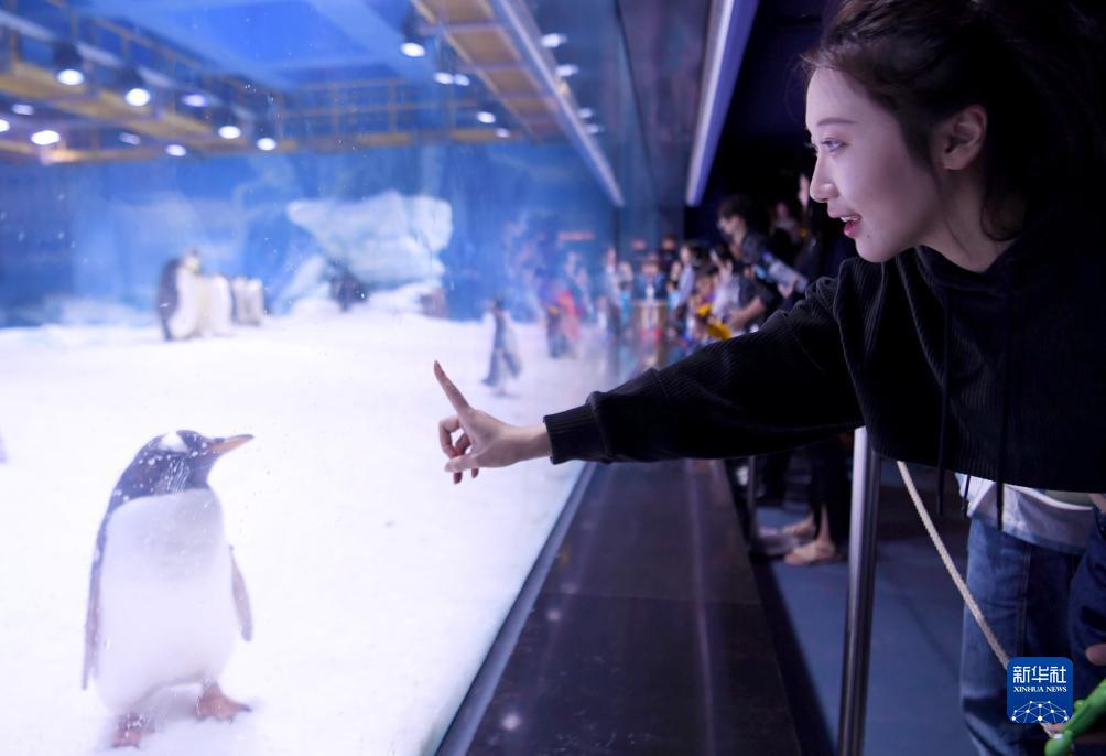 10月5日,游客在河南省鄭州市中牟縣海昌海洋公園游玩。
