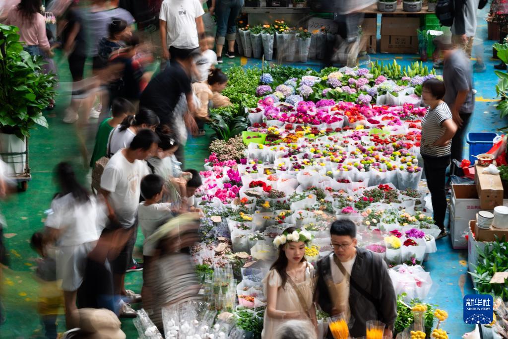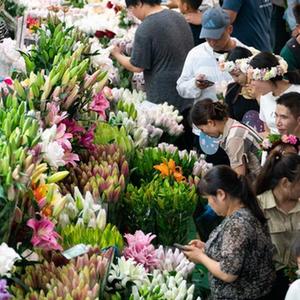 中秋國慶長假期間,不少市民游客前往云南省昆明市的斗南花卉市場選購鮮花。
